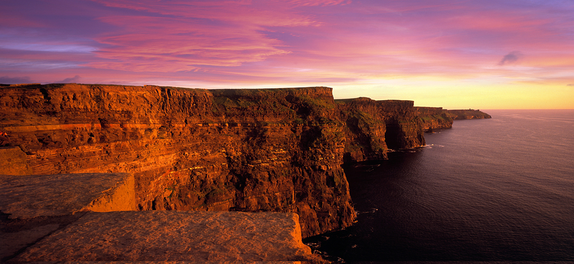 Breakfast. Commence your journey towards Galway. Passing through the pretty village of Adare and the Medieval City of Limerick, arrive in Bunratty where you can visit the 15th century Bunratty Castle and Folk Park. Travel north through Ennis to the Cliffs of Moher. These impressive cliffs rise to a height of 700 feet above the sea and stretch for a distance of about 5 miles along the coast. Time permitting, visit the new Visitor Centre. Drive to Galway for a short sightseeing tour of the city called the "City of the Tribes" after the fourteen most prominent families in this area. Galway long traded with Spain and the Spanish influences are many in the city. Of note is the Spanish Arch and the Spanish Parade promenade. Continue into the wild and rugged Connemara region, famous for the savage beauty of its lake and mountain scenery and on to Ballynahinch Castle in Connemara, in heart of Galway. Overnight.
