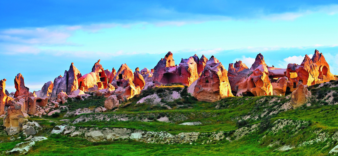 Early in the morning at 4 am, take an optional hot air balloon tour. Nothing can prepare you for the awesome sights as the sun rises over the spectacular surrealistic landscapes. Excellent flying conditions allow the balloons to gently drift over and between the fairy chimneys, pigeon houses hewn into the unique rock formations, orchards and vineyards, through impressive valleys, each with distinctive rock formations, colors and features and then float up over rippled ravines for breathtaking views over the region.